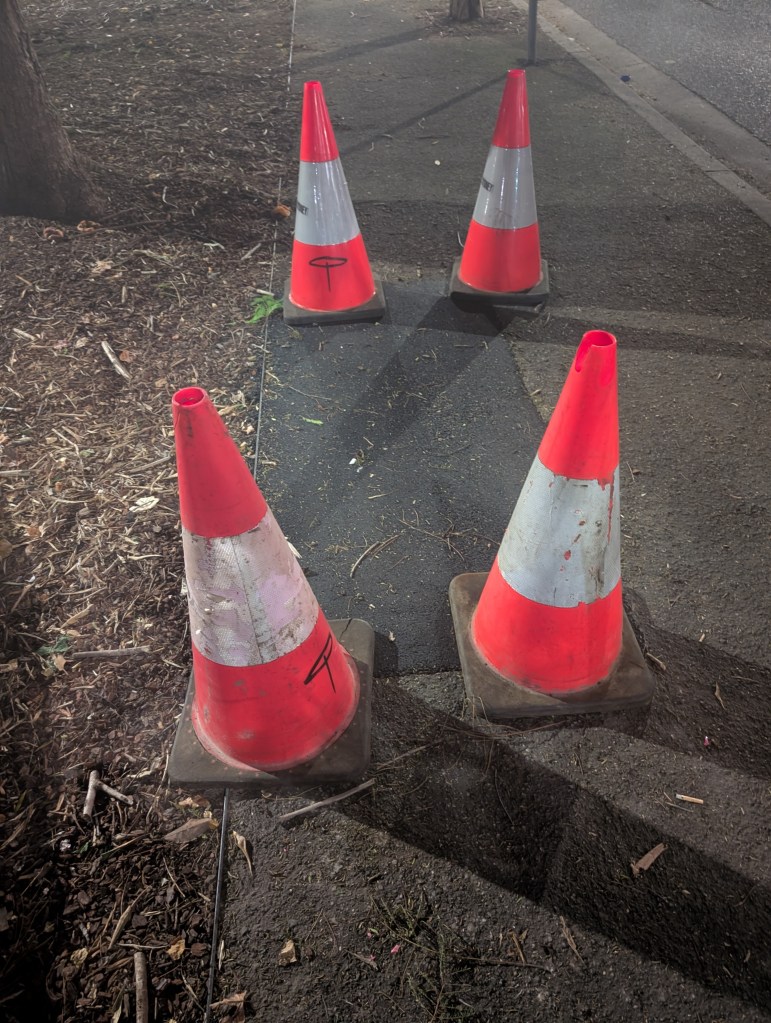 Witches hats forming geometric patterns.